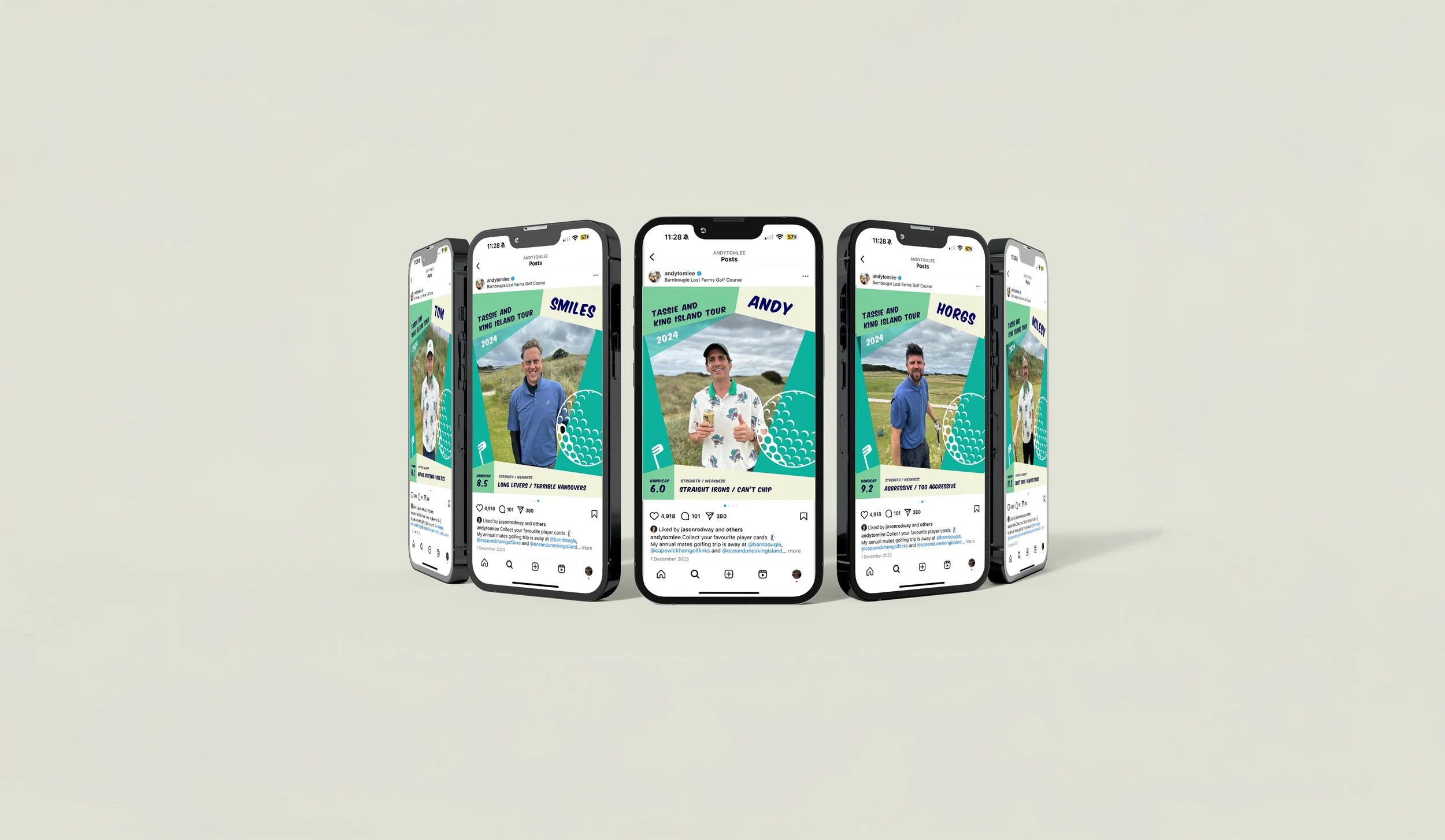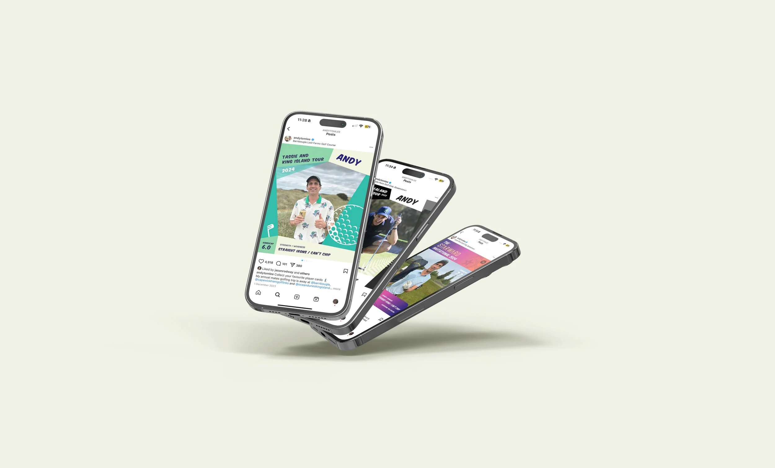 Having enjoyed Hamish and Andy’s work for years, these icons of Oz entertainment needed some help with their socials. Andy Lee reached out to explore ways to make his social channels—focused on his golf tours with friends—more fun, personable, and relatable. The goal was to cut through the increasing volume of content, making posts engaging and enjoyable for his audience, inspiring shares among friends, increasing visibility for the sport, and adding a touch of humour.